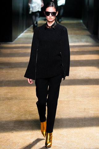 I'm afraid the Olsen's are sort of going backwards with The Row. I'm sad to say this because when you look at the previous collections, they're absolutely flawless and I've included The Row in my fashion week round ups since they've started, I believe. This collection doesn't feel and luxe as they used to. Also, the clothes seem to be more appropriate for the spring time. With that said, I can't help but lust over almost everything. The sheer tops at the end, the sandals, the perfect trousers and jackets and that harvest gold dress. I would wear that dress everywhere.